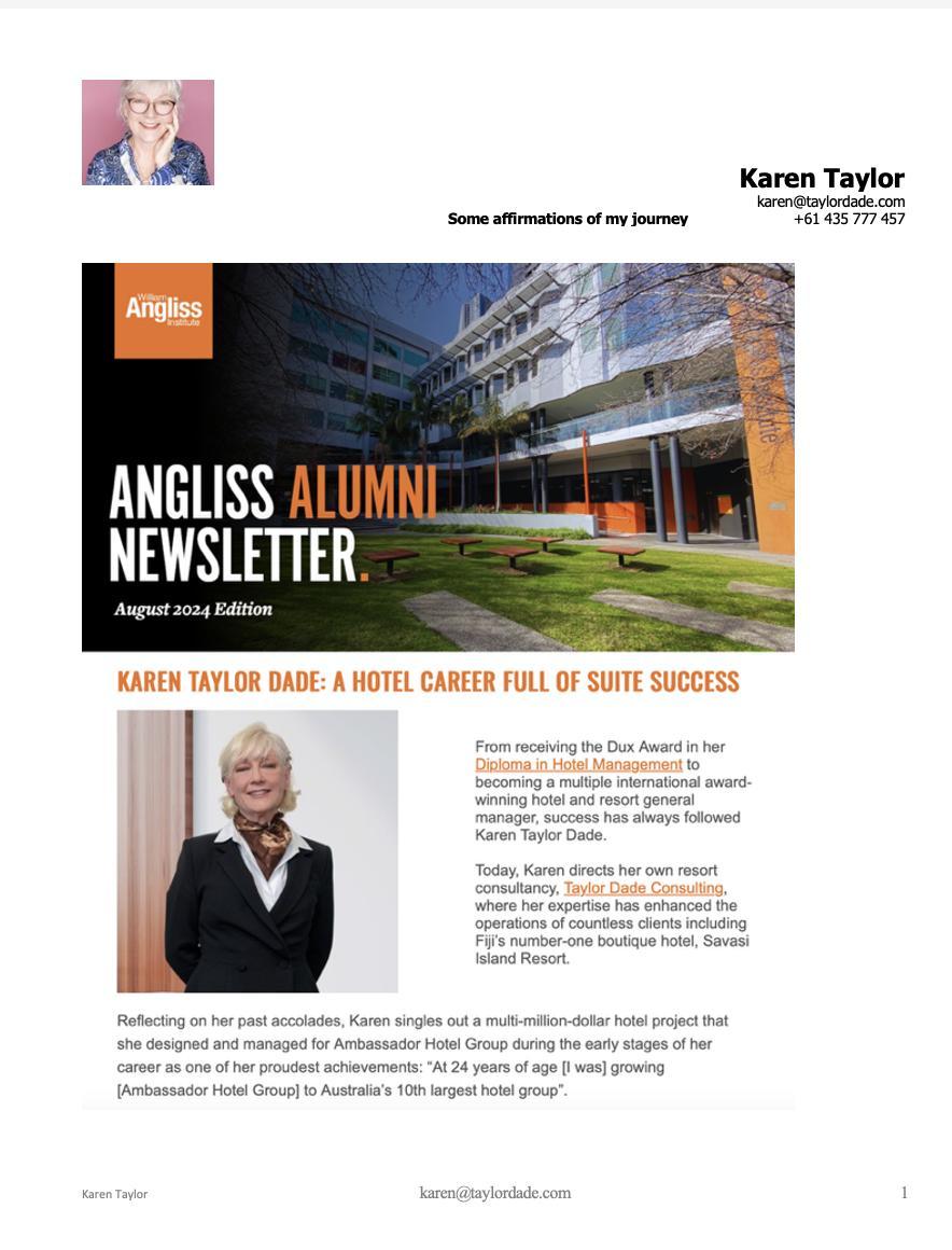 As appearing in the William Angliss Newsletter